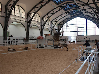 Wie dem auch sei: Rentiere sind hübsche Tiere und nett anzuschauen. So lange sie im Hamburger Bahnhof stehen werden sie nicht zu Rentierschinken verarbeitet. Man kann in der Ausstellung auf der Empore übernachten - warum auch immer. Reizvolle Vorstellung: Eine Nacht im Museum, auf einer Empore, zwischen lauter Rentieren. Die Sache kostet 1000€ pro Nacht und ist zum Glück schon bis zum Ausstellungsende ausgebucht, sonst müsste Der Große Bloguator™ dringend darüber nachdenken.